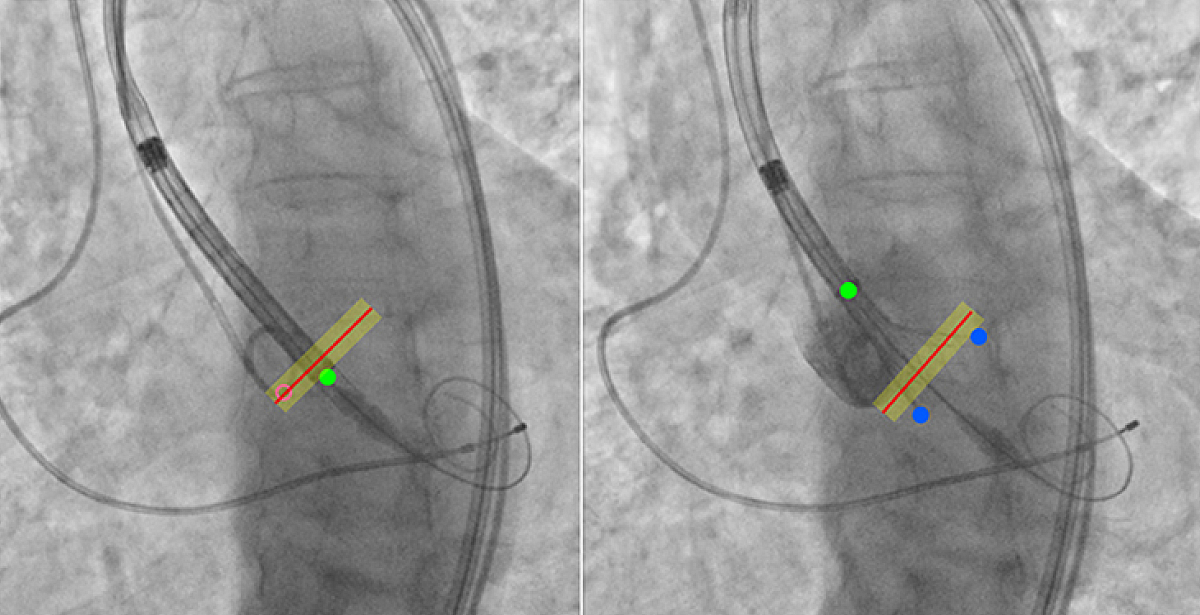 Нейронная сеть определяет положение 11 ключевых точек на поверхности сосуда, клапана и системы его установки внутрь аорты с точностью до 95%.