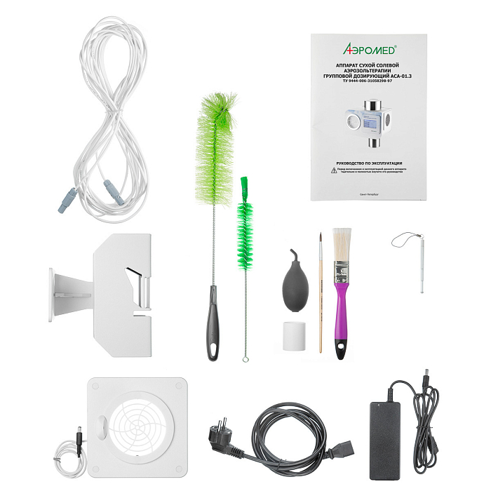 Минимальная комплектация аппарата обеспечивает базовый функционал для проведения управляемой галотерапии. Версия без узла автозагрузки, без перемешивателя, без возможности удаленного управления.