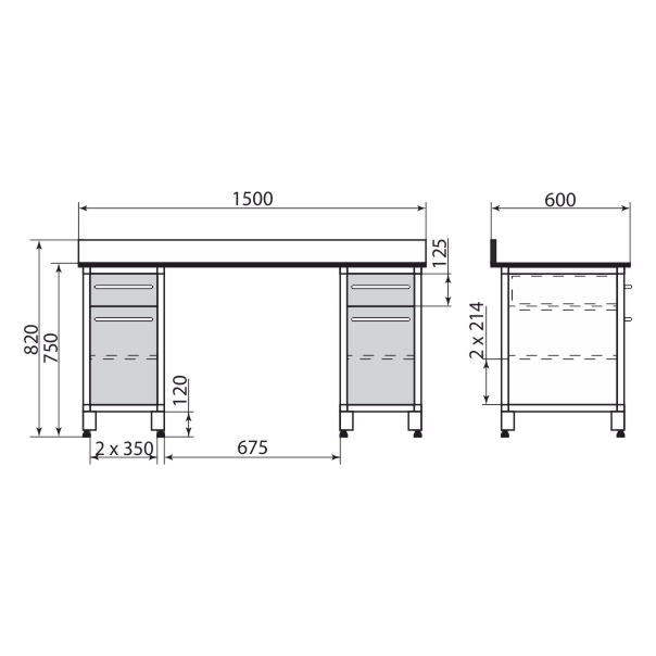 - Столешница: из пластика HPL толщиной 16 мм. Материал устойчив к растворам и химикатам, не подвержен коррозии и окислению, выдерживает температуру до 1800С
