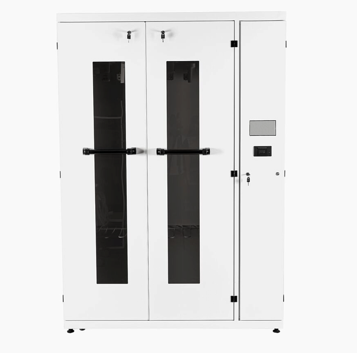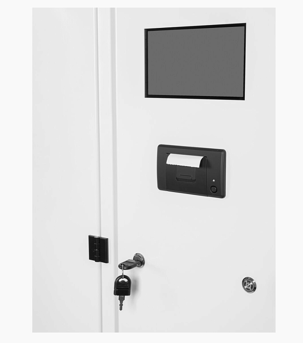 - Дверь отсека хранения: Дверь каждого отсека снабжены замками, запирающимися на ключ. В двери отсека хранения имеется прозрачное окно из тонированного поликарбоната