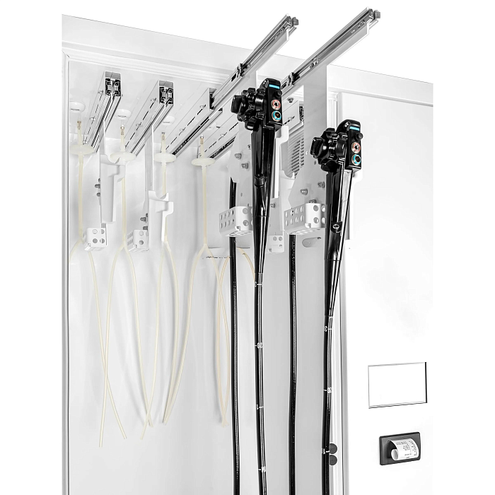 Шкаф предназначен для сушки и асептического хранения гибких волоконно-оптических и видео эндоскопов всех типов, прошедших предварительную обработку, с возможностью подачи сжатого воздуха в каналы эндоскопов и установленной системой подогрева циркулирующего внутри контура циркуляции воздуха. Обеспечивает оптимальные условия хранения за счет стерильной воздушной среды и встроенной системы контроля. Шкаф предназначен для применения в условиях лечебно-профилактических учреждений, научно-исследовательских институтов и других медицинских учреждений.