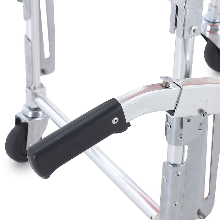 Благодаря универсальной конструкции модель совмещает в себе функции носилок и небольшого кресла-каталки. Изделие оснащено четырьмя маневренными колёсами. Задние имеют больший диаметр для улучшения проходимости. Надёжный тормозной механизм исключает произвольное движение носилок.