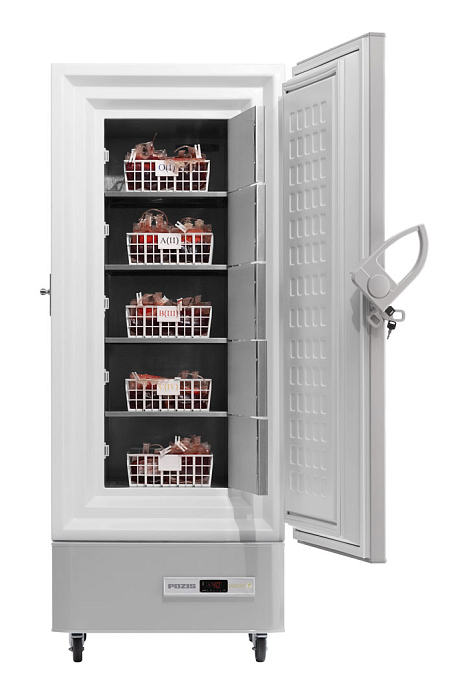 Медицинский морозильник вертикального типа ММШ-220 «ПОЗиС» с объемом 200 литров предназначен для замораживания и длительного хранения плазмы крови, ее компонентов, а также различных биологических образцов, включая лейкоциты, эритроциты, кожу, костную ткань, бактерии и вирусы. Он широко используется в станциях переливания крови, больницах, санитарно-эпидемиологических службах и научно-исследовательских лабораториях.