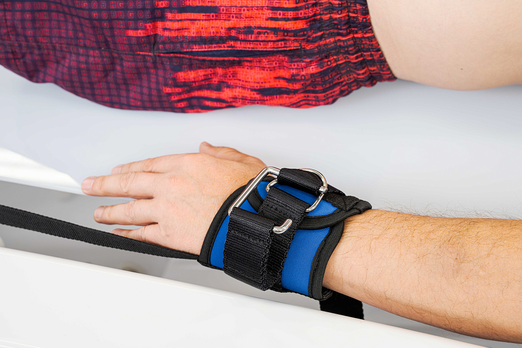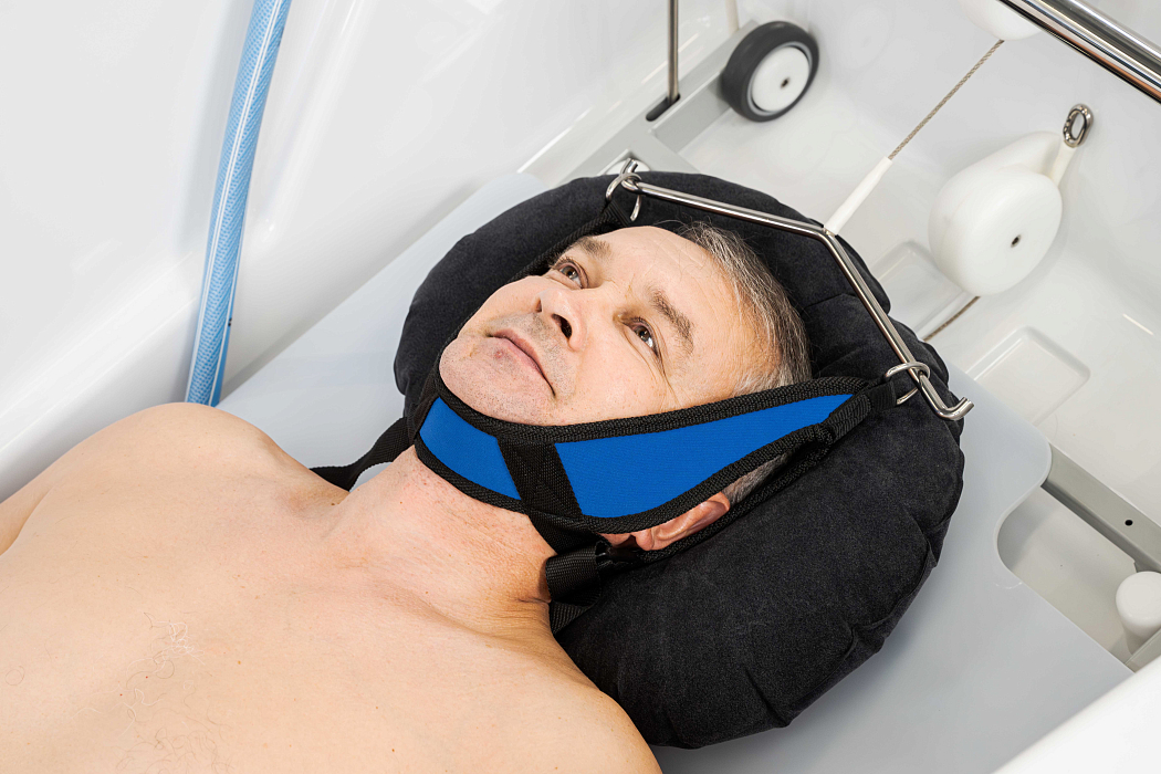 - Всё необходимое для вытяжения даже в базовой комплектации. Все комплектации комплекса, помимо электронной системы вытяжения, встроенного подъемника и каталки для пациента, включают ступени для ванны, неопреновые ремни для пояснично-крестцового вытяжения в двух размерах и петлю Глиссона для шейного вытяжения. Крепление пряжек поясов вытяжения производится на подъемнике над поверхностью воды, что удобно при подготовке пациента к процедуре