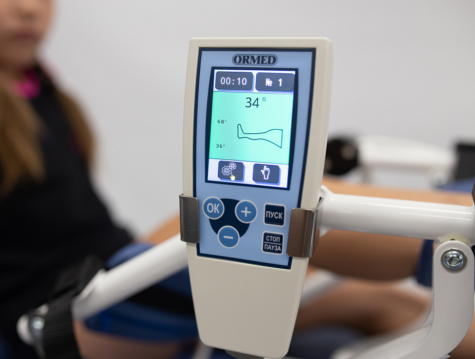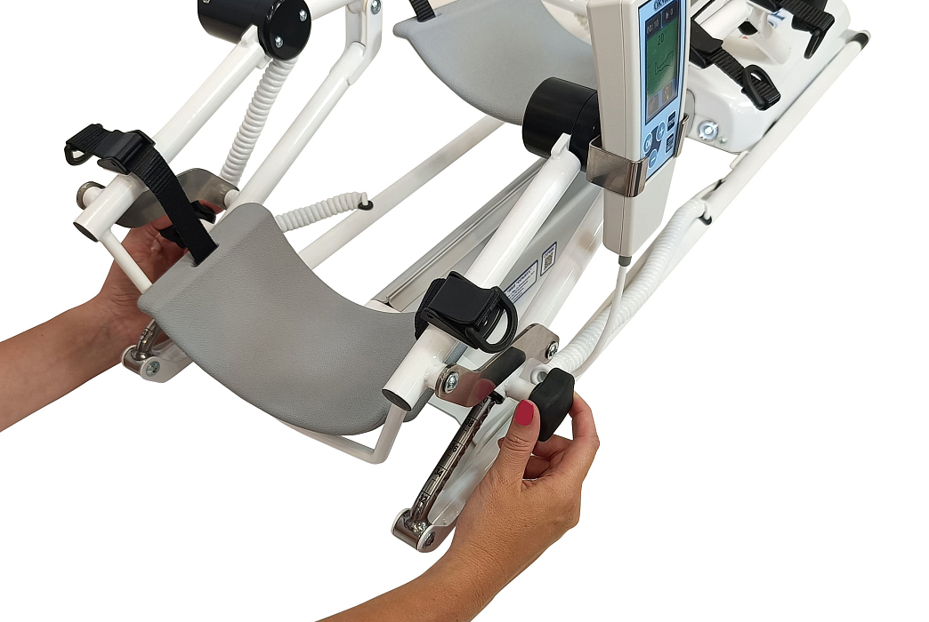 Аппарат для роботизированной механотерапии для коленного и тазобедренного суставов. Обеспечивает как постоянное пассивное движение, так и контролируемое активное движение. Правильность движений отслеживается с помощью тензодатчика. Наличие предустановленных программ тренировок. Сохранение в памяти настроек процедур для 250 пациентов. Подходит для правой и левой ноги