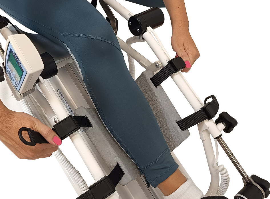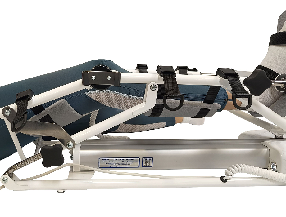 - Надёжная фиксация. Для использования в пассивном режиме по дополнительному заказу поставляются ремни фиксации колена. Они повышают эффективность разработки коленного сустава при наличии контрактуры.
