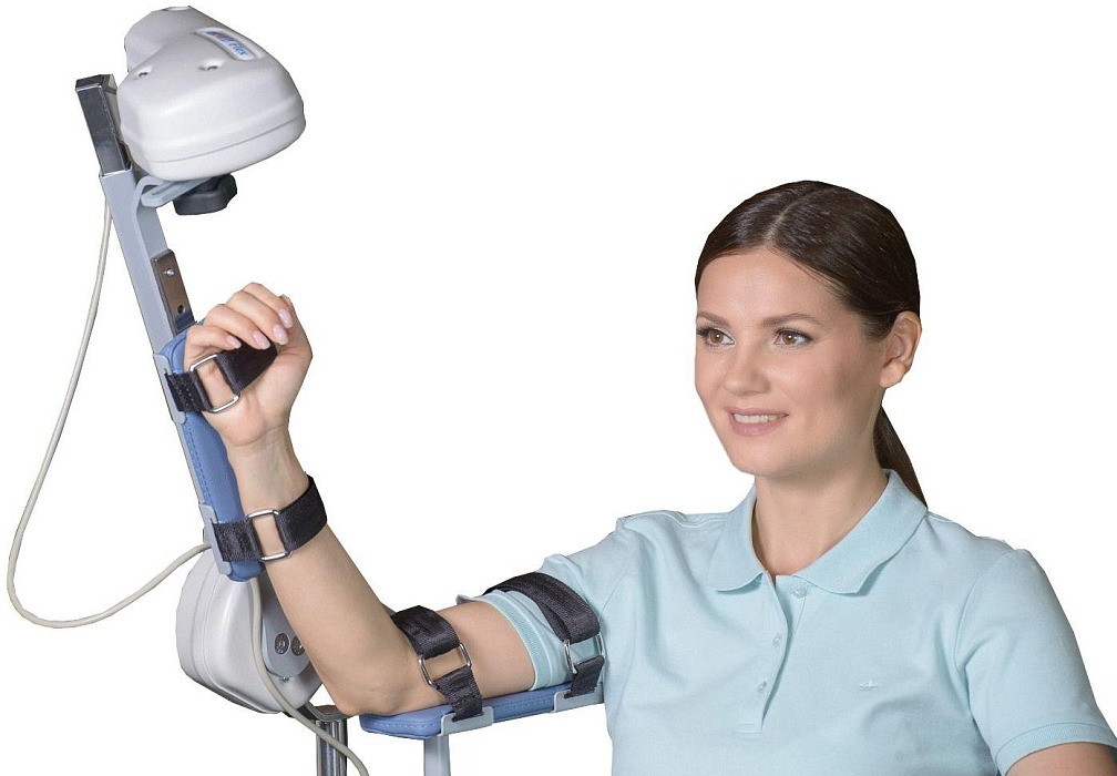 Аппарат для роботизированной механотерапии для локтевого сустава Наличие предустановленных программ тренировок. Сохранение в памяти настроек процедур для 250 пациентов. Подходит для правой и левой руки.