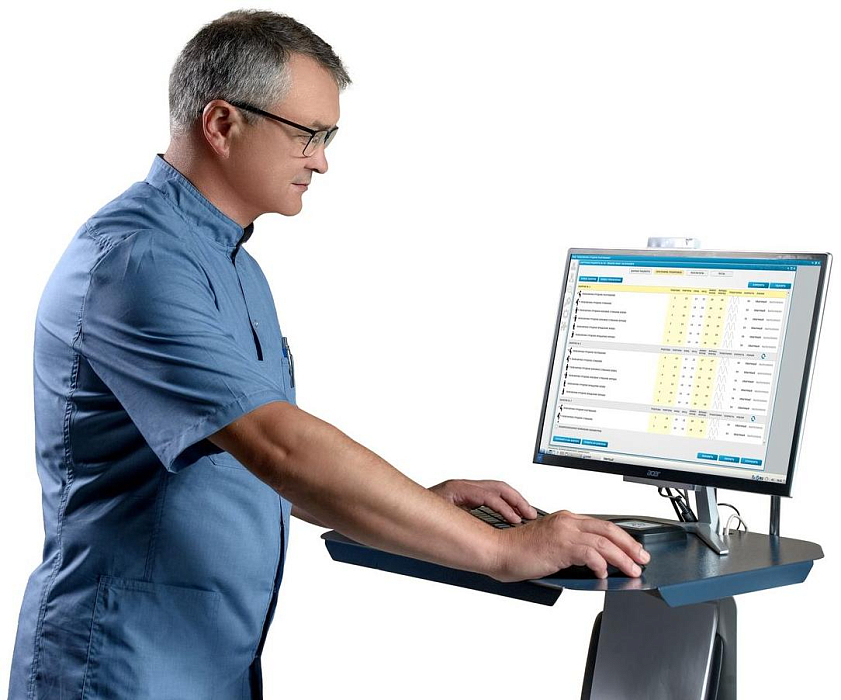 Станция центральная для управления тренировочным процессом. Программное обеспечение является нашей уникальной разработкой. Тренажеры объединены в единую сеть с центральным сервером. Врач полностью контролирует процесс тренировки, может легко и без лишних усилий формировать и корректировать тренировочный план пациента, отслеживать динамику в интуитивно понятном графическом виде. Результаты лечения можно распечатать и продемонстрировать пациенту динамику его состояния.