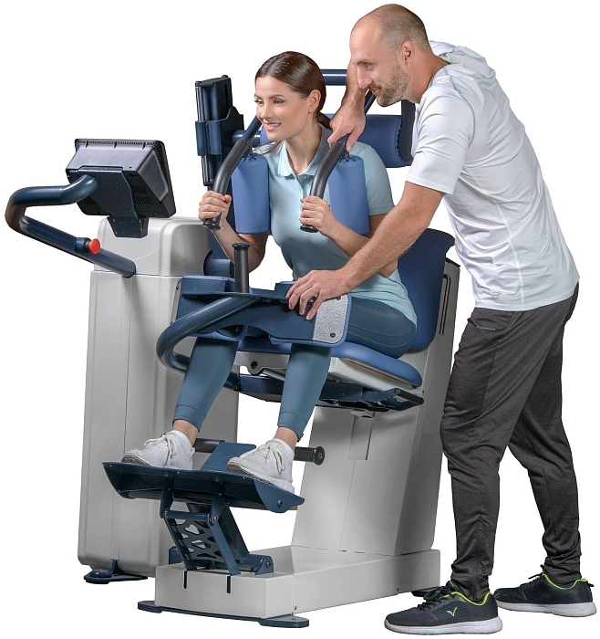 Для тестирования и активной реабилитации заболеваний позвоночника. Заставляет работать поясничный и грудной отделы позвоночника, активизируя мышцы разгибатели и сгибатели. Предназначен для пациентов с сильными и продолжительными болями в спине, с плохой координацией движений, имеющих слабые мышцы. Система фиксирования бедра исключает работу сильных мышц разгибателей бедра, принимающих на себя нагрузку вместо тех мышц, которые нужно укрепить. Нагрузку получают только мышцы в поясничном и грудном отделах позвоночника.