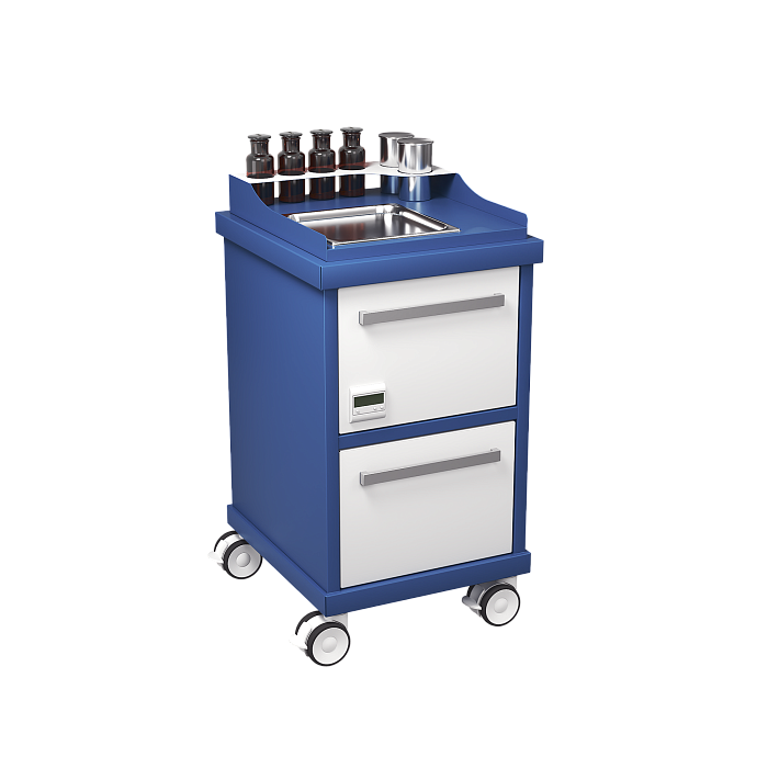 Блок рабочего места врача c 2-мя ящиками (подогрев инструментов и система для сброса использованных инструментов) и верхней консолью