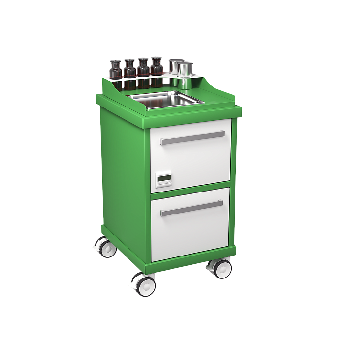- Отсек для сброса использованных инструментов: Наличие 1 шт., наполнение - металлический лоток объёмом 10 литров из нержавеющей стали для дезинфицирующего раствора