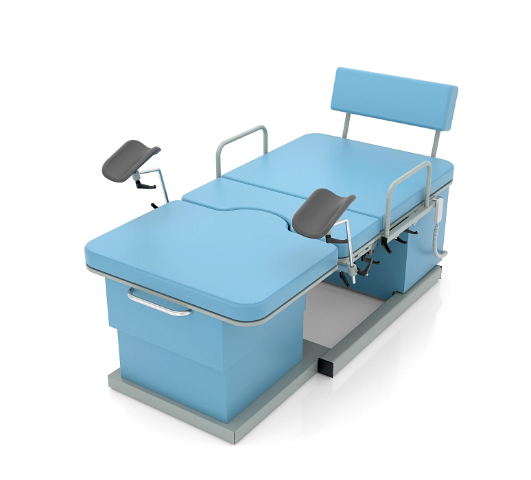- Конструкция: Родовая кровать состоит из базового основания, включающего спинную и седалищную секции, ножной секции