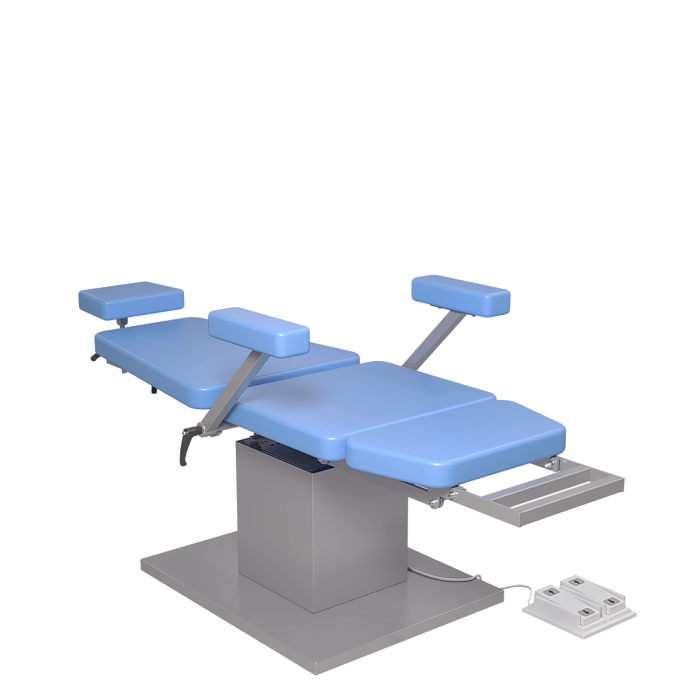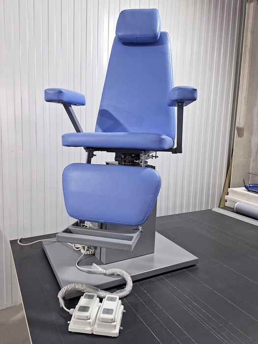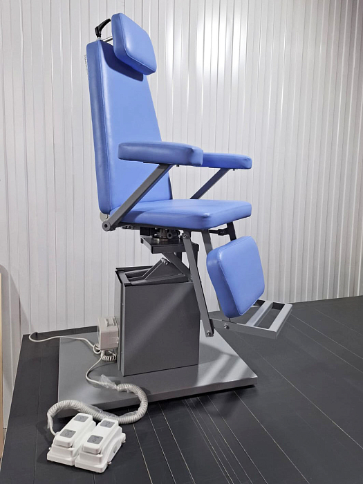 - Универсальное смотровое кресло, предназначенное для всех видов ЛОР осмотра и манипуляций, как в стационарных, так и в амбулаторных условиях с возможностью изменения положения пациента за счёт работы электроприводов и изменения положения кресла и его поворота