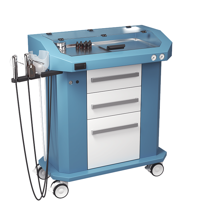- Рабочее место ЛОР врача, в котором объединено различное лечебное и диагностическое оборудование, функциональные модули и поверхности для хранения инструментария и расходных материалов