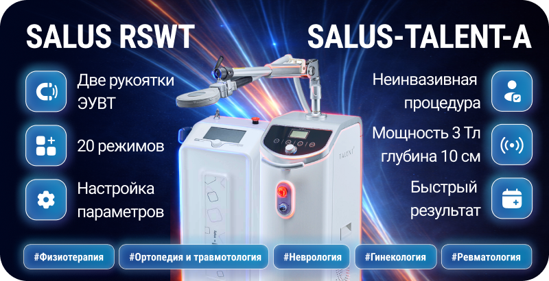 SALUS RSWT — аппарат радиальной ударно-волновой терапии для работы с ортопедическими и мышечно-фасциальными задачами, а SALUS TALENT-A — система глубокой бесконтактной магнитной стимуляции с полем до 3 Тесла. Вместе они помогают расширить направления терапии и предложить пациентам современные неинвазивные процедуры.Запустите востребованное направление неинвазивной физиотерапии с полным сопровождением.