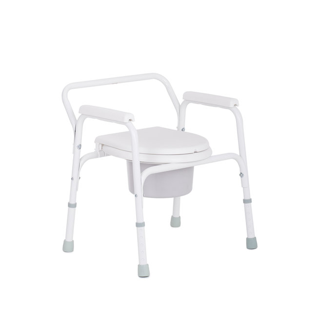 - Съемный стульчак с защитной крышкой, а также съемная санитарная емкость, изготовлена из противоударного легко моющегося пластика.